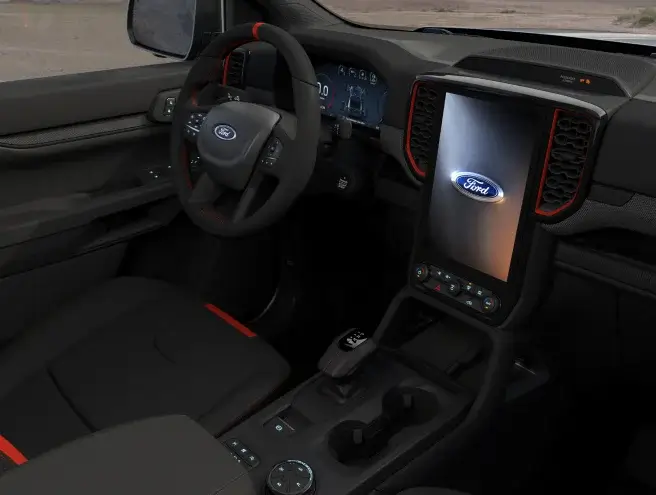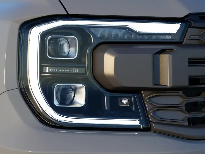 Điểm nhấn then chốt phần đầu xe là chữ Ford được thiết kế dạng khối nổi cỡ lớn. Đèn LED ma trận nổi bật trong đêm, cản trước bắt thẳng vào khung xe và tấm hợp kim chắn gầm siêu cứng, tất cả đều như đang sẵn sàng mở đường dẫn lối