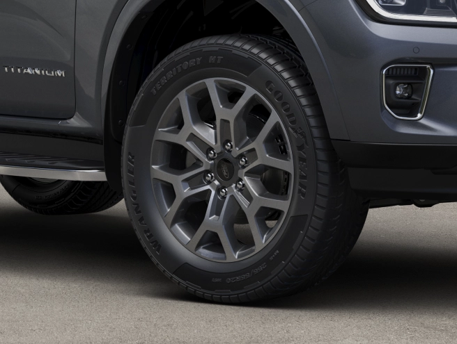 Mâm xe hợp kim lớn 20 inch đa chấu đươc hoàn thiện tỉ mỉ, tôn thêm vẻ bề thế, cơ bắp và linh hoạt cho Titanium. Các điểm nhấn mạ chrôm trên tấm chắn bùn giúp gắn kết bánh xe với phần thân trên